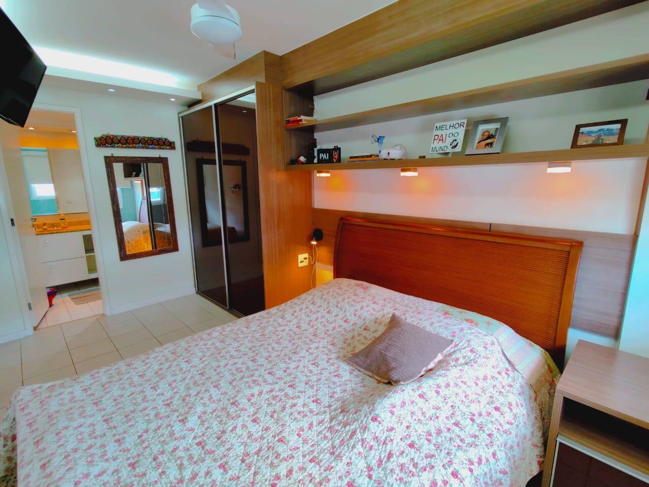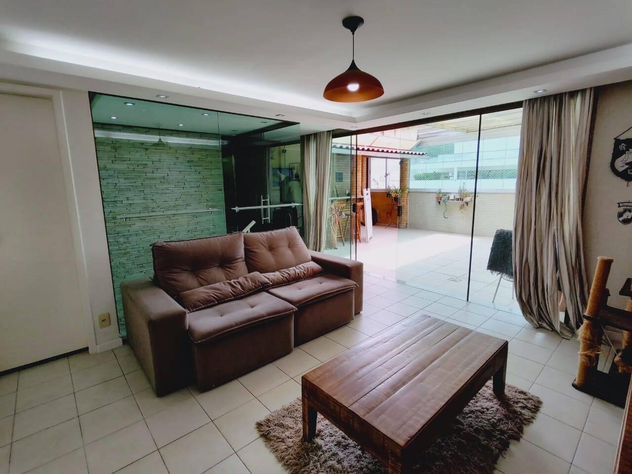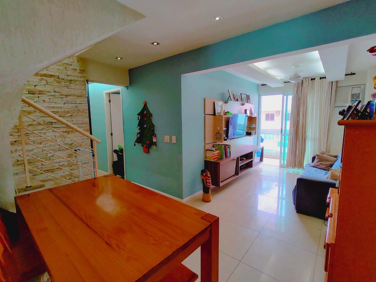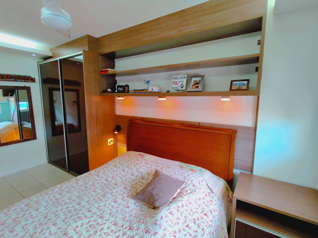 Excelente cobertura no Victória Top Park na Freguesia com 176m2, sol da manhã, ótima sala em dois ambientes, varanda, três quartos sendo uma suíte com banheiro com armário e box Blindex, todos os quartos com armários embutidos, ampla cozinha repleta de armários planejados, banheiro de serviço revertido para uma dispensa, banheiro social com armário e Blindex.