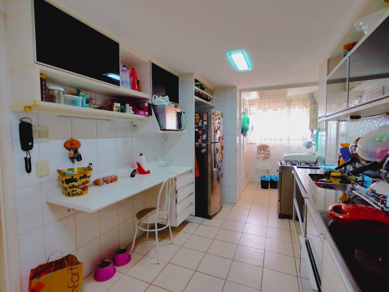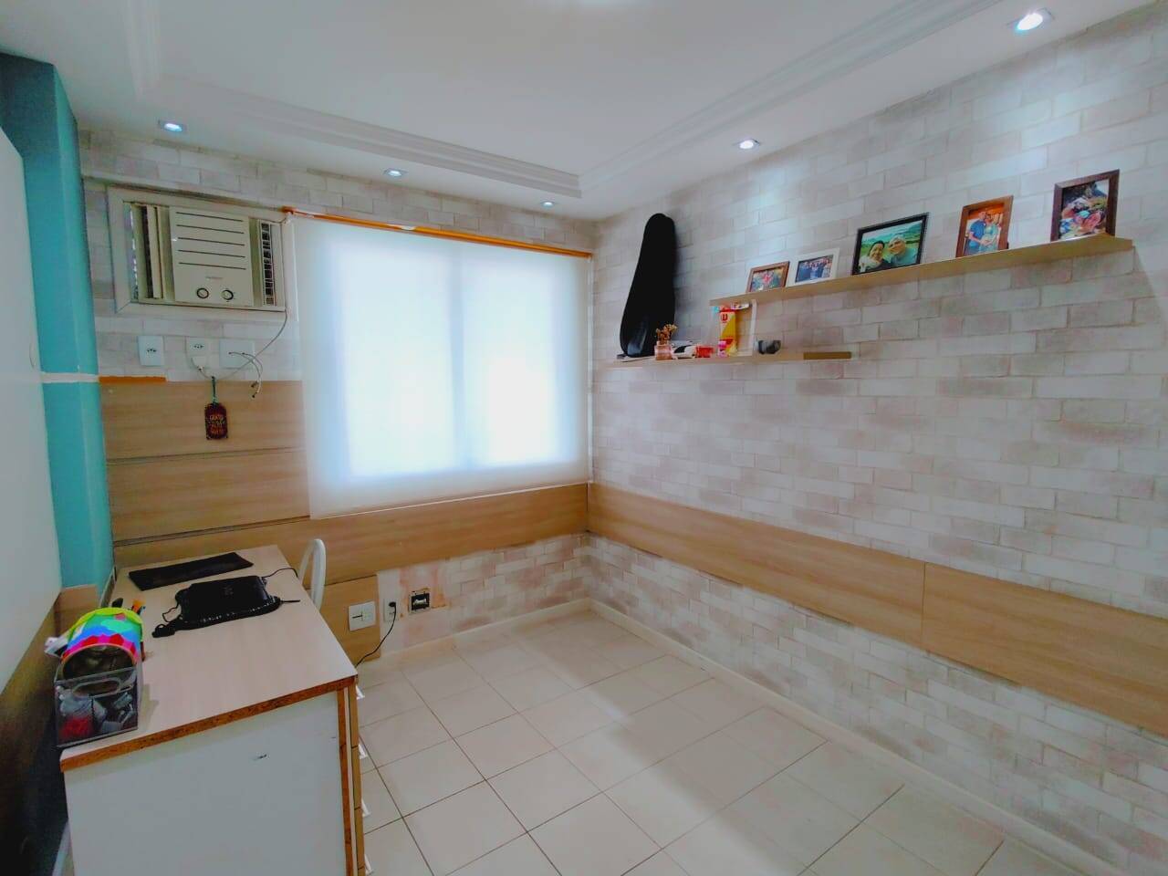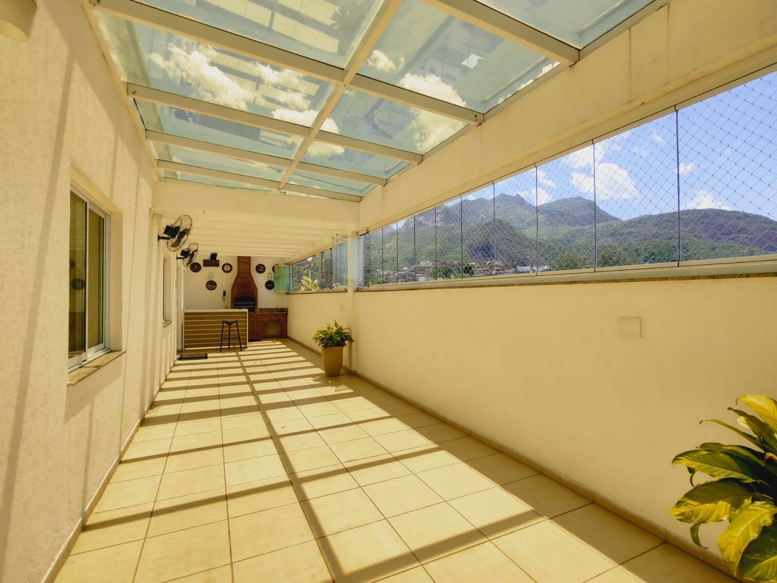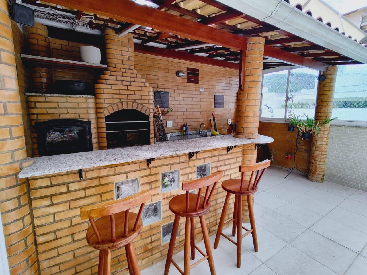 Excelente cobertura no Victória Top Park na Freguesia com 176m2, sol da manhã, ótima sala em dois ambientes, varanda, três quartos sendo uma suíte com banheiro com armário e box Blindex, todos os quartos com armários embutidos, ampla cozinha repleta de armários planejados, banheiro de serviço revertido para uma dispensa, banheiro social com armário e Blindex.